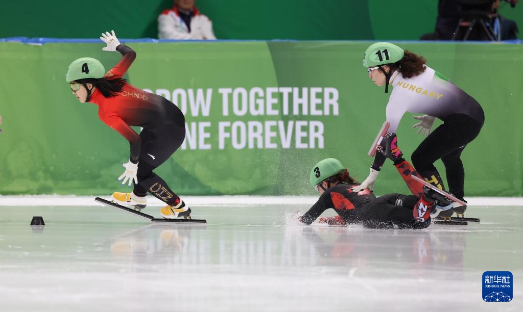 1月22日,中国选手李金恣(左一)在比赛中。新华社记者 姚琪琳 摄