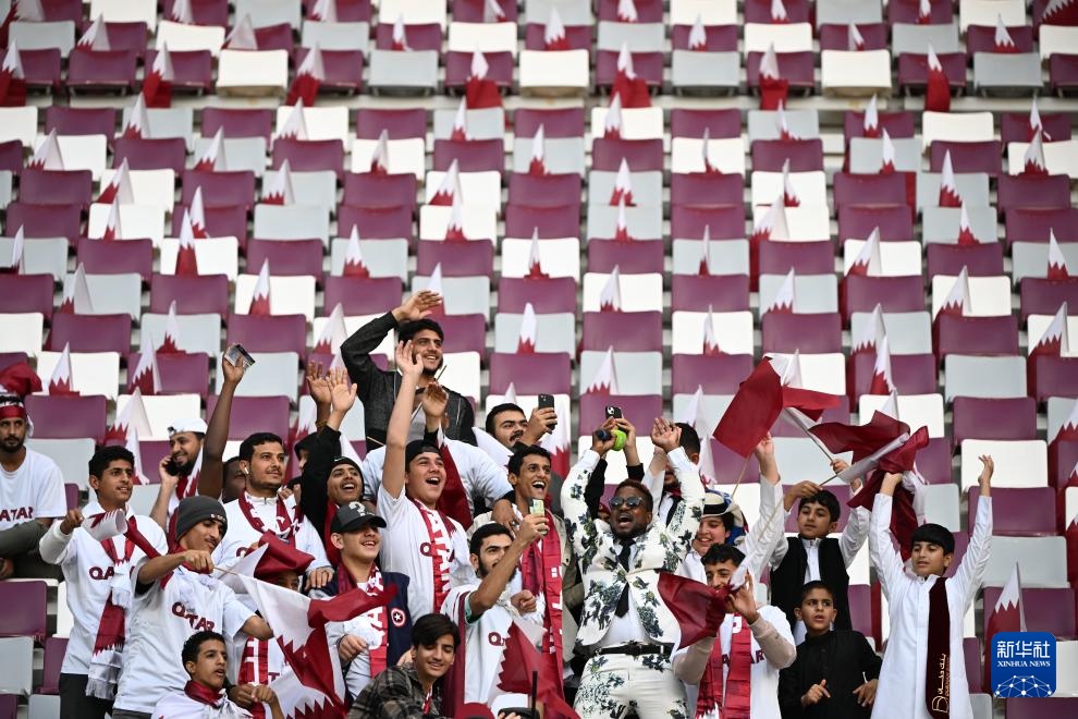 1月22日,卡塔尔队球迷在看台助威。新华社记者 孙凡越 摄