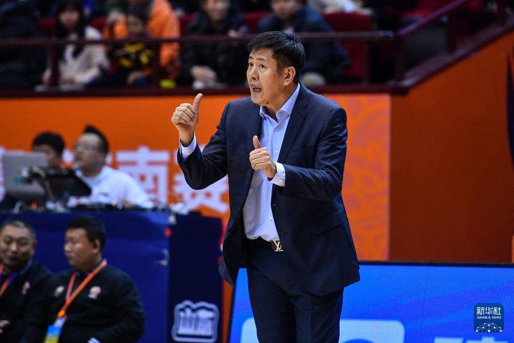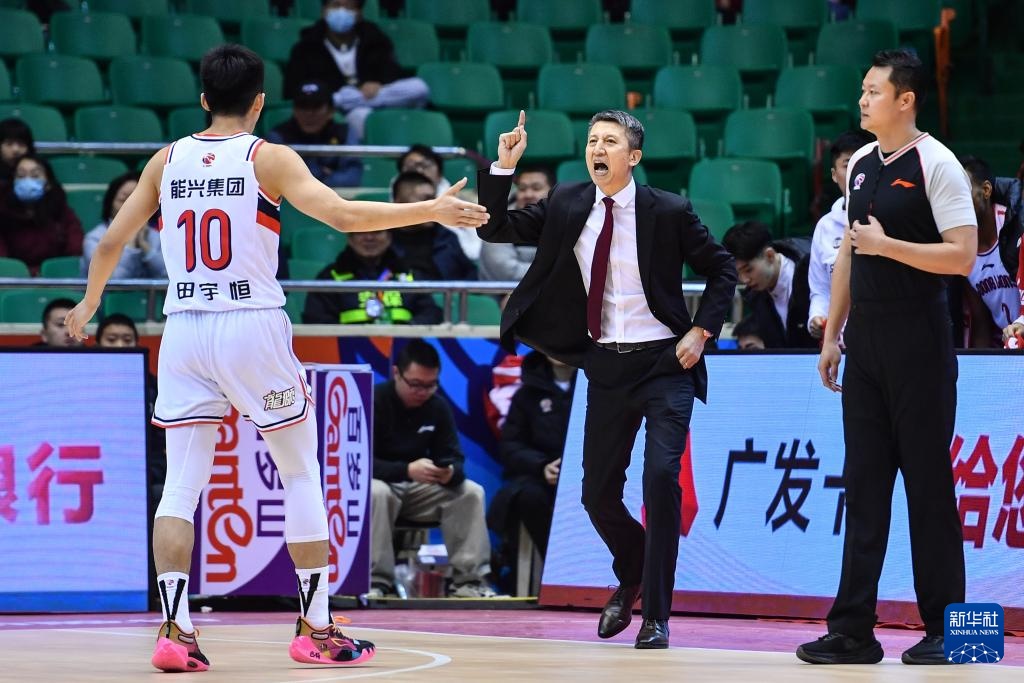 1月22日,广州龙狮队主教练郭士强(中)在比赛中指挥。新华社记者 朱峥 摄