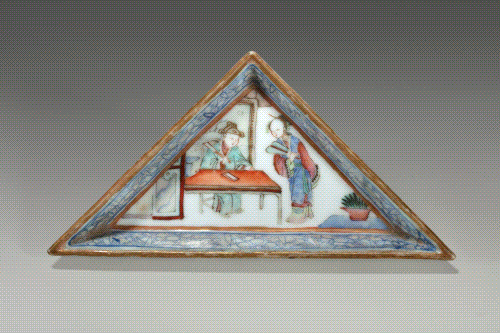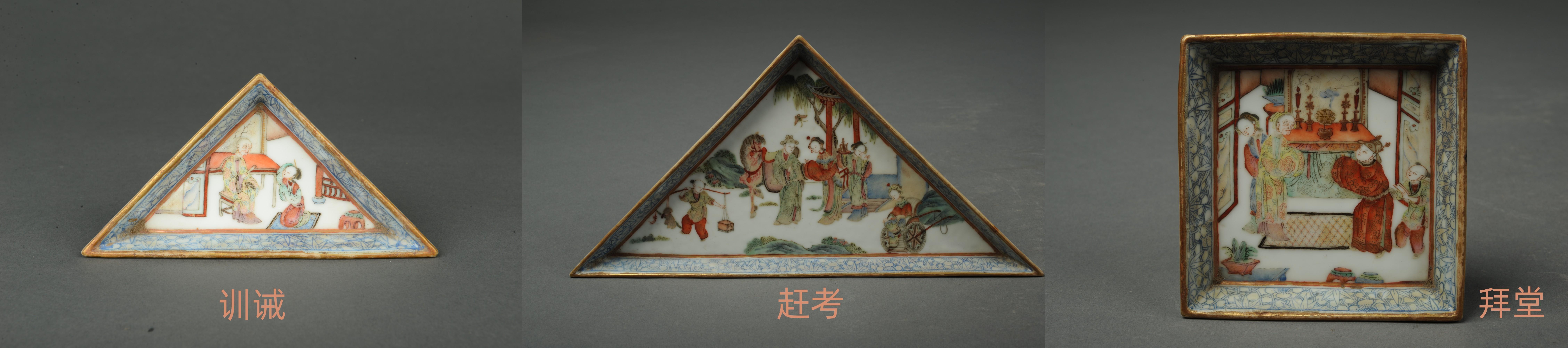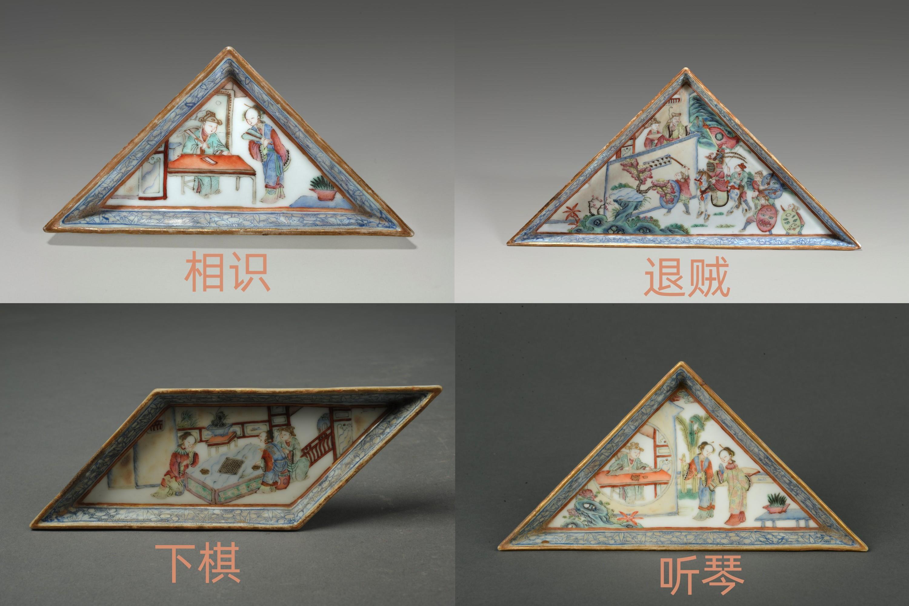 这套七巧粉彩瓷盘不光形状上颇具特色