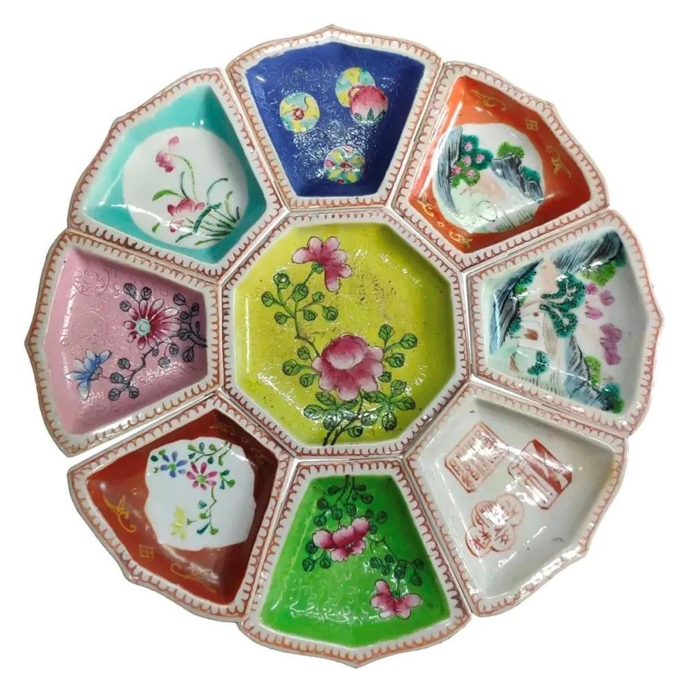 △ 清粉彩什锦九子盘,福建民俗博物馆藏。
