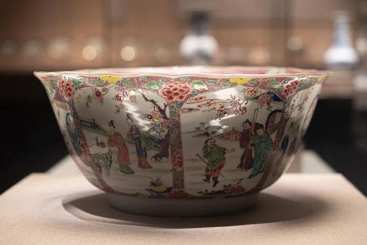 △ 清雍正粉彩开光《西厢记》人物故事图潘趣大碗,广东省博物馆藏。