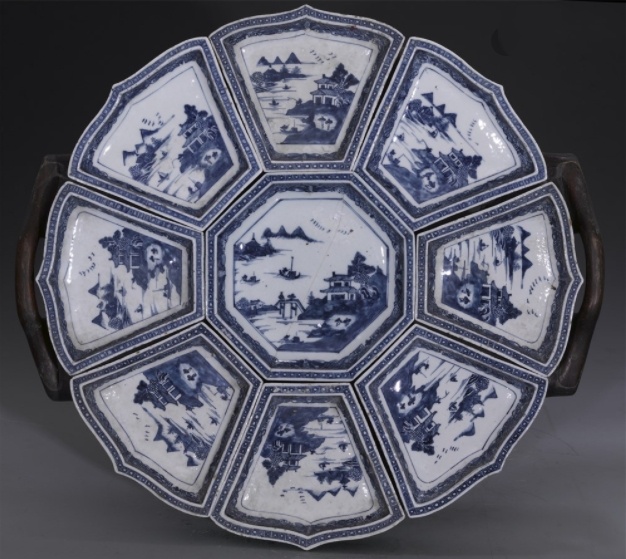 △ 清道光青花山水图攒盘,桂林博物馆藏。