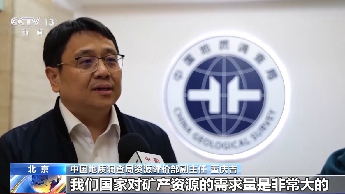 中国地质调查局资源评价部副主任 董庆吉:我们国家对矿产资源的需求量是非常大的,就需要调查我们国家的潜在的资源和已有的资源储量,2023年圈定找矿靶区96处,提出勘查区块建议79个,进一步摸清了现有资源储量的数量、质量、结构、空间分布和开发利用情况。