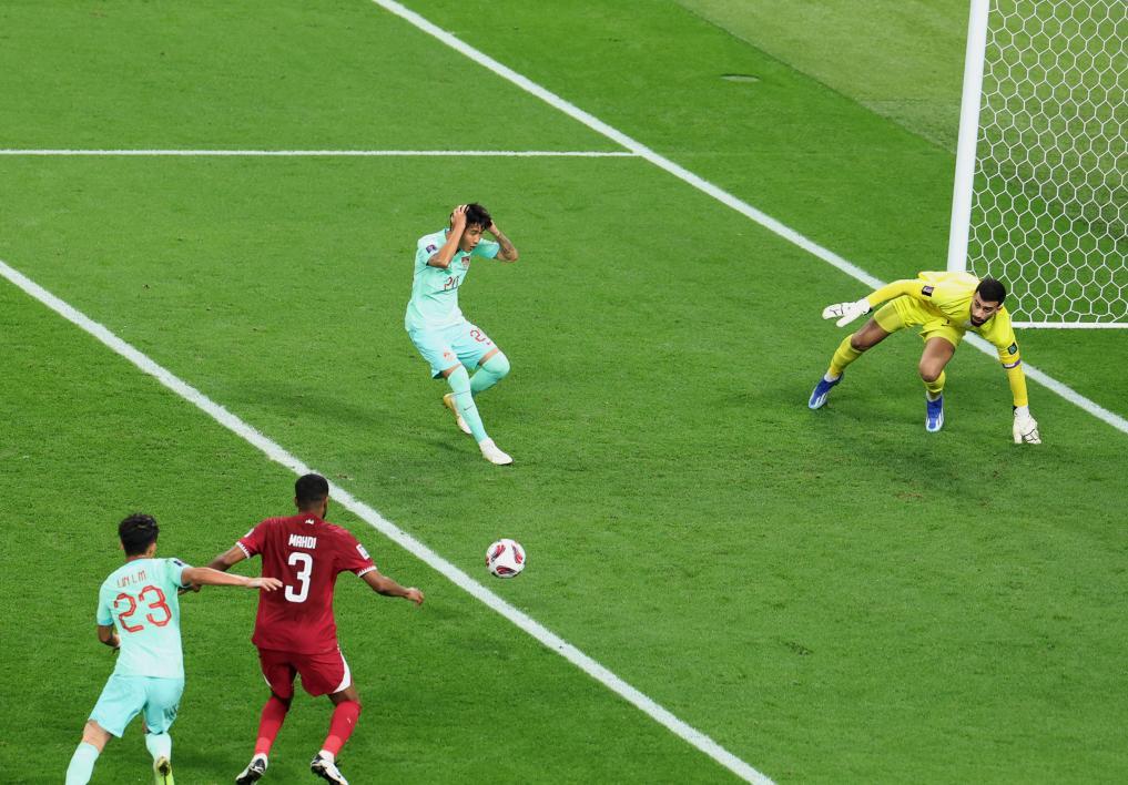 当天对阵卡塔尔队,中国队最好的机会出现在第36分钟。吴曦在禁区前的射门被后卫挡到韦世豪脚下,后者近距离推射太正,被对方门将挡出,中国队错失领先机会。