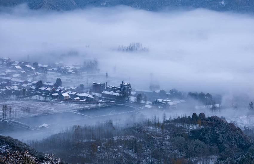 湖北日报客户端讯(通讯员南融媒、王毅、张广建、罗雨)近日,南漳县迎来降雪天气,九集镇胡家棚村被点缀的雪意涔涔,银霜遍地。