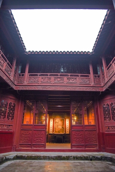 进入松鹤堂内部,主体建筑为“回”字形双层砖石、木质阁楼,中部则是八方形天井。天井四周是典型的“四水归堂”与“走马回廊”形制的房屋。