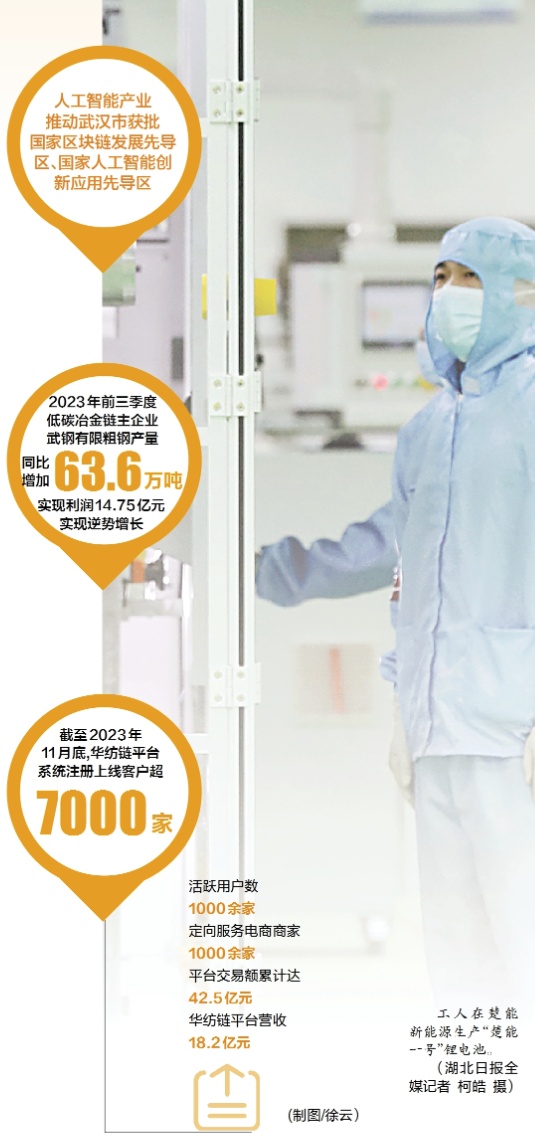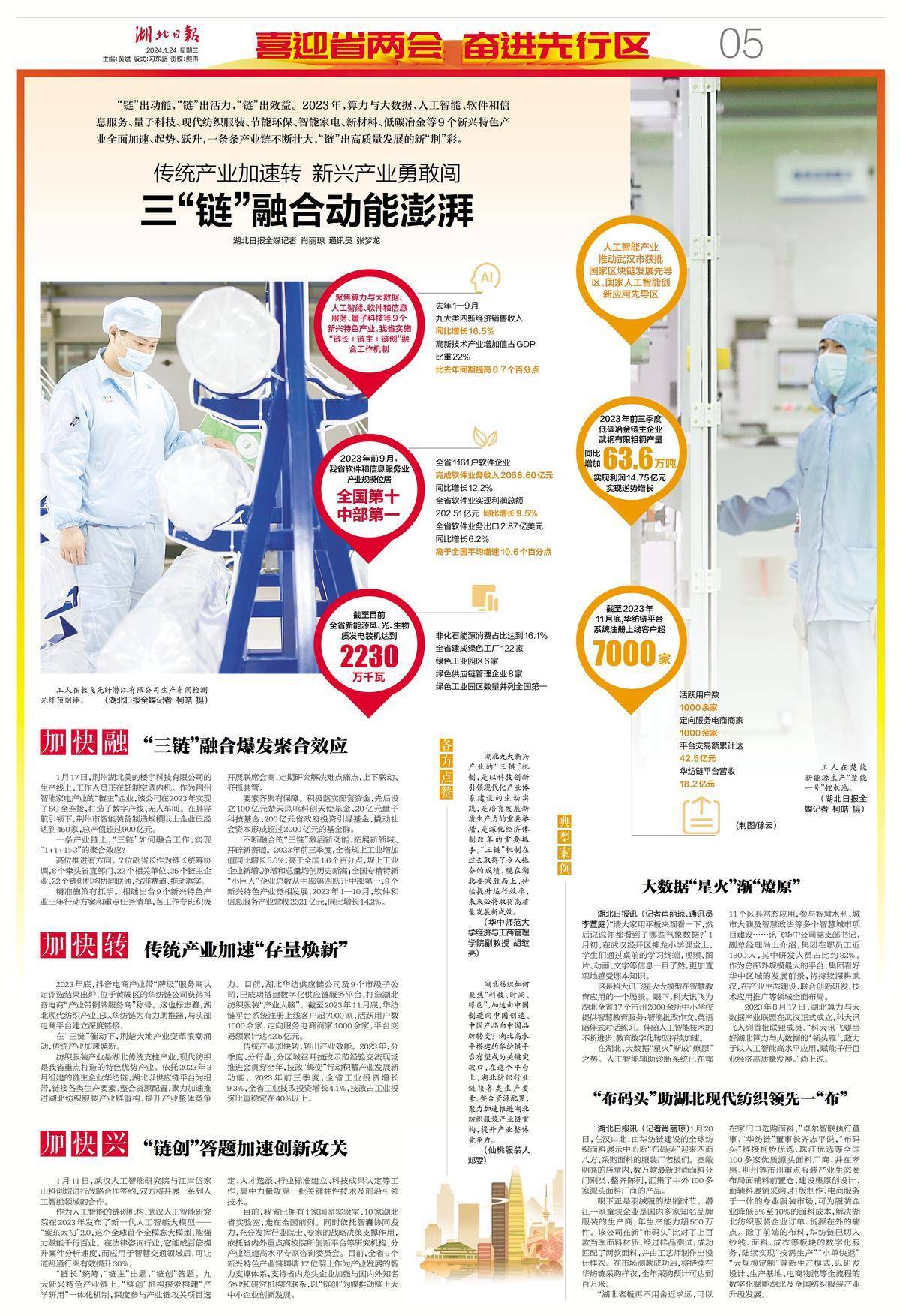 “链”出动能,“链”出活力,“链”出效益。2023年,算力与大数据、人工智能、软件和信息服务、量子科技、现代纺织服装、节能环保、智能家电、新材料、低碳冶金等9个新兴特色产业全面加速、起势、跃升,一条条产业链不断壮大,“链”出高质量发展的新“荆”彩。