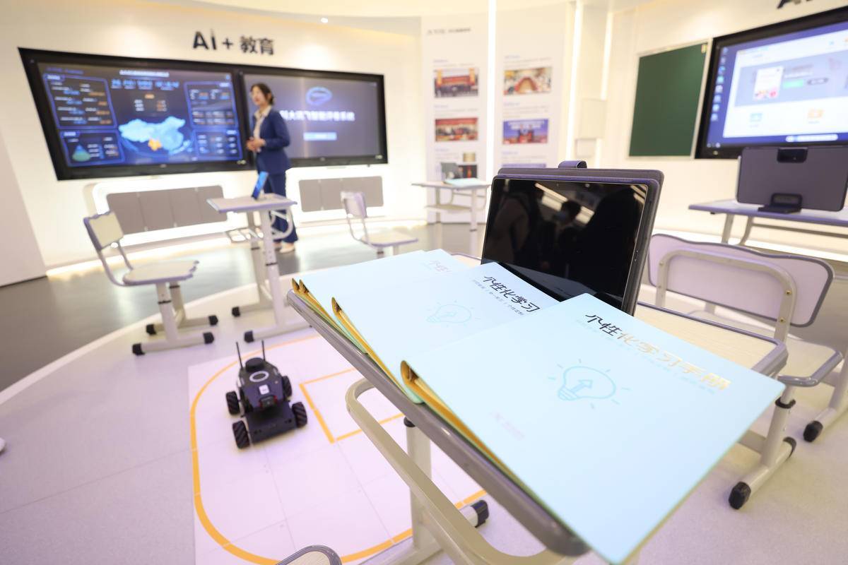科大讯飞工作人员展示“AI+教育”。(湖北日报全媒记者 柯皓 摄)