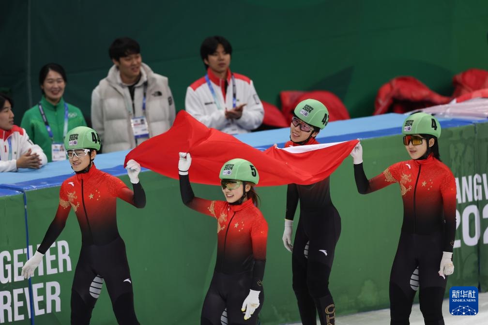 当日,在韩国江陵举行的2024年江原道冬青奥会短道速滑混合团体接力A组决赛中,由李金恣、杨婧茹、张柏浩和张心喆组成的中国队以2分46秒516的成绩夺得冠军。