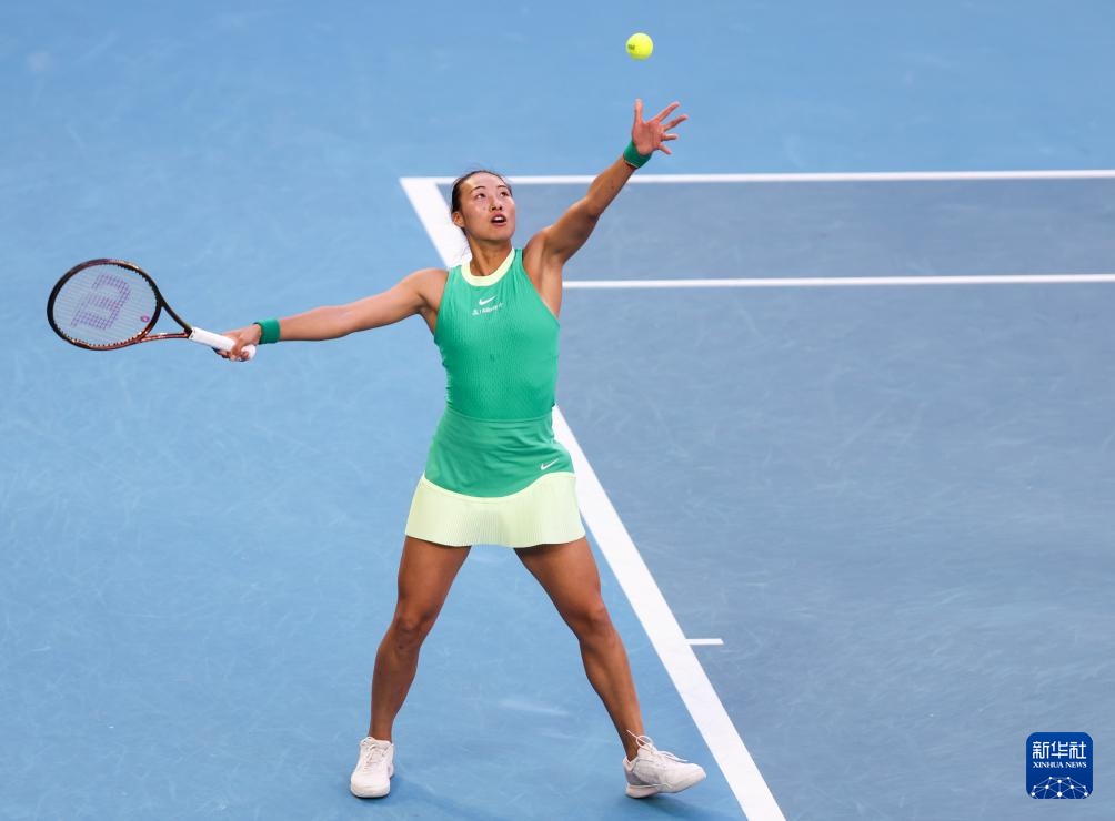 1月24日,郑钦文在比赛中发球。新华社记者 马平 摄