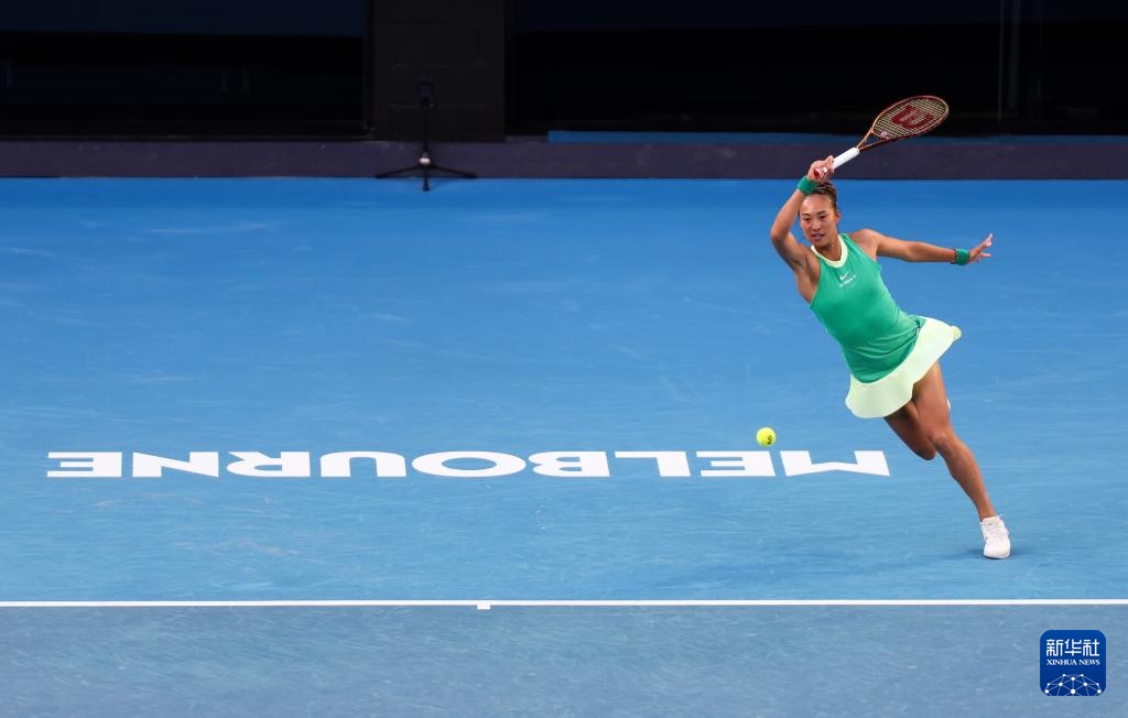 1月24日,郑钦文在比赛中回球。新华社记者 马平 摄