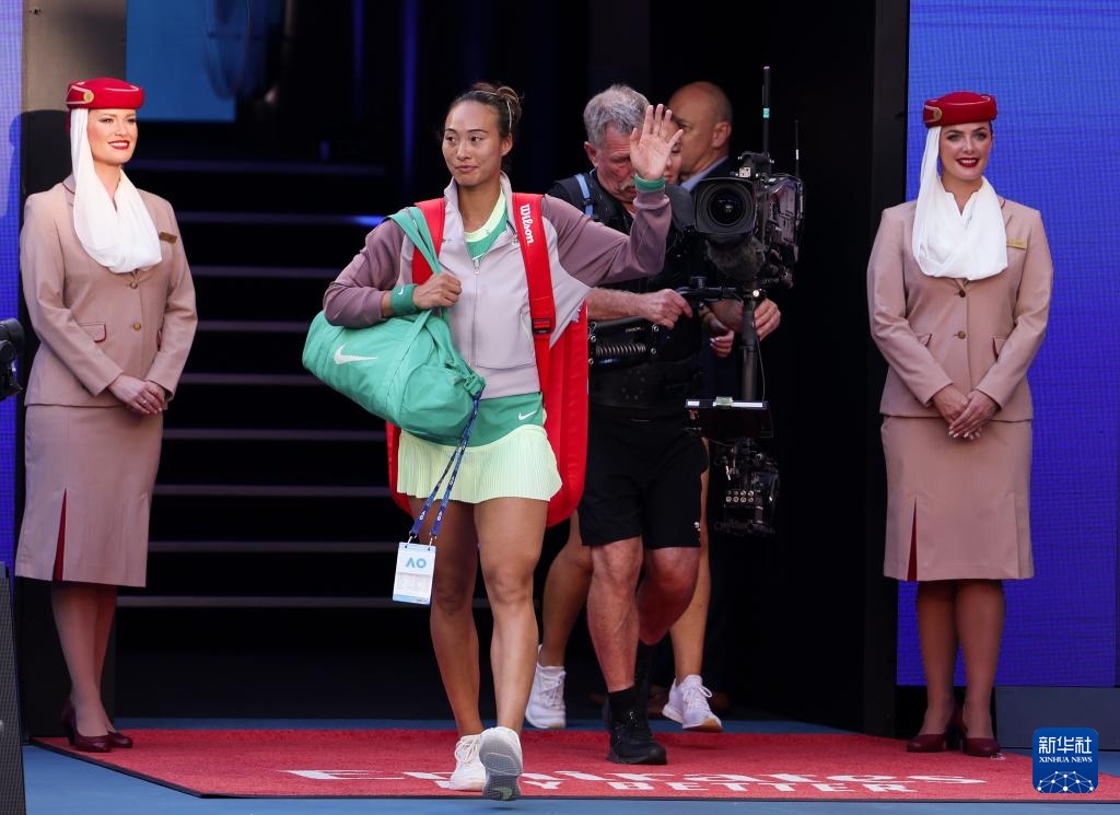 1月24日,郑钦文在赛前进场向观众致意。新华社记者 马平 摄
