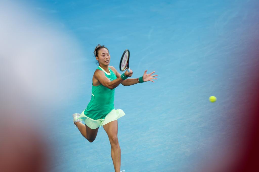 1月24日,郑钦文在比赛中回球。新华社记者 马平 摄