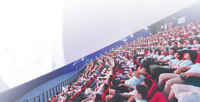 学生们在河南省科技馆“科学之夜”活动中观看球幕电影。 新华社记者 张浩然摄 |
