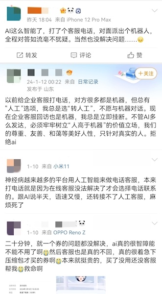 不仅是网店,一些售后等热线电话也使用了AI客服。武汉消费者刘女士反映,多次遇到过机械的AI电话客服,与其对话经常不知所云、答非所问,“想和真人对话,有这么难吗?”