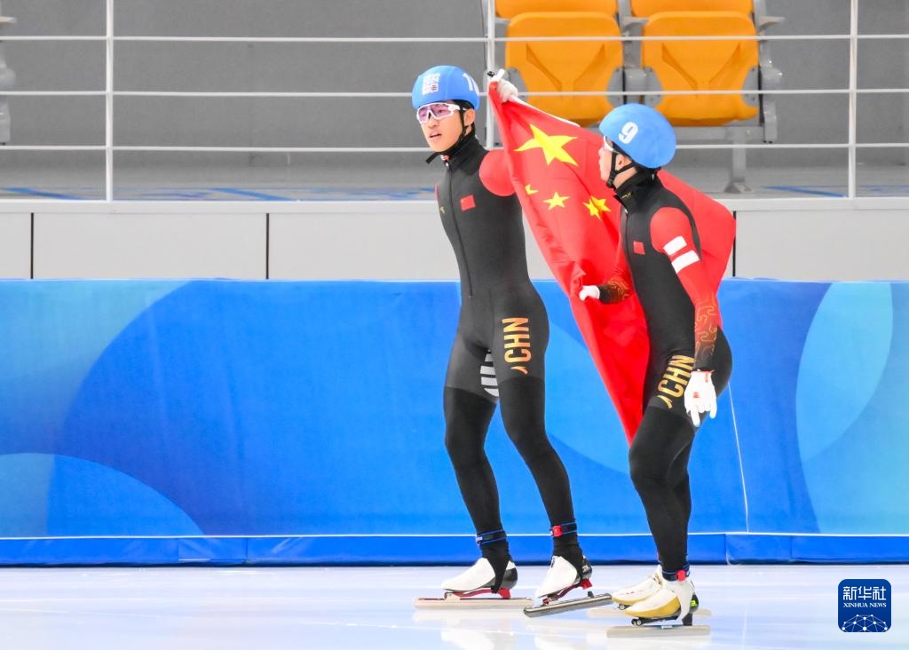 1月26日,潘宝硕(左)、张万里在比赛后庆祝。新华社记者 朱炜 摄