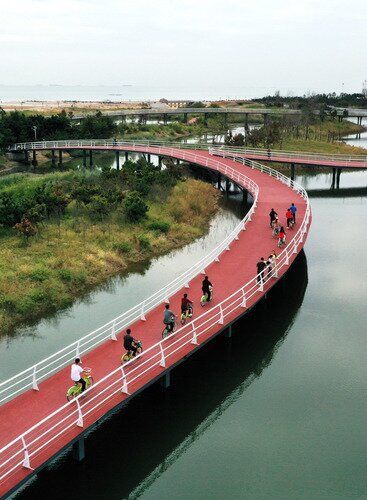 游客在日照阳光海岸绿道骑行。新华社记者 范长国 摄