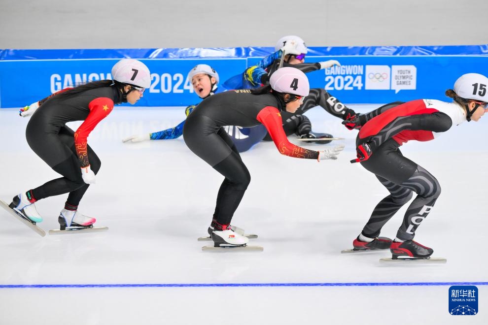 1月26日,中国选手刘昀琪(左一)在比赛中。新华社记者 姚琪琳 摄