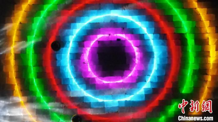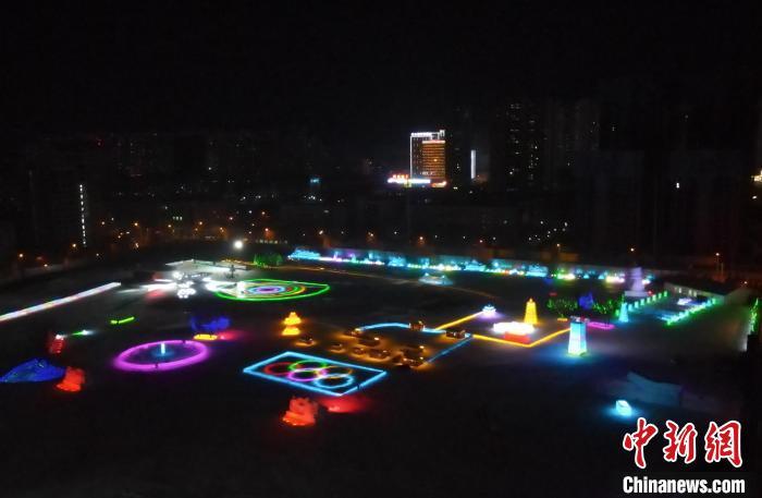 航拍西宁市城东区高原冰雪大世界内的灯光冰场。 马铭言 摄