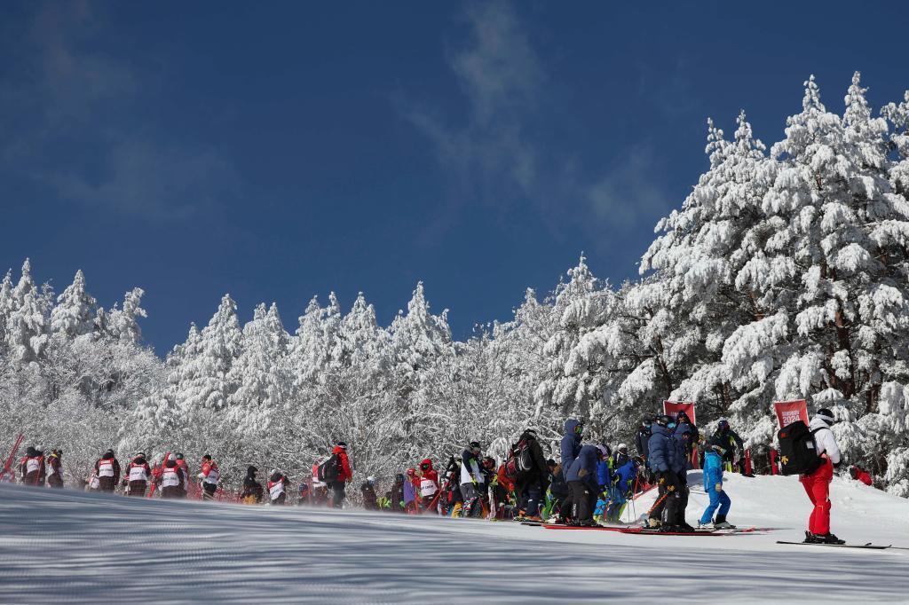 1月22日,运动员和教练们在2024年江原道冬青奥会高山滑雪女子全能回转比赛前熟悉赛道。新华社记者 胡虎虎 摄