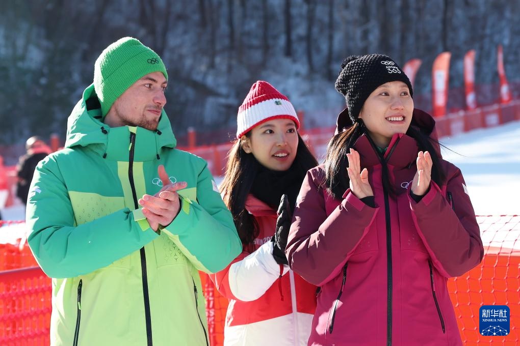 1月26日,颁奖嘉宾国际奥委会江原道冬青奥会协调委员会主席张虹(右)出席高山滑雪颁奖仪式。新华社记者 李明 摄