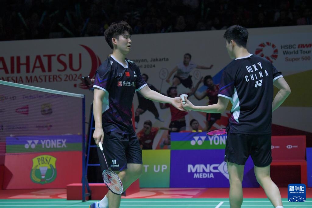 当日,在雅加达举行的2024年印度尼西亚羽毛球大师赛男双四分之一决赛中,中国组合刘雨辰/欧烜屹2比1战胜印度尼西亚组合古塔玛/伊斯法哈尼,晋级四强。