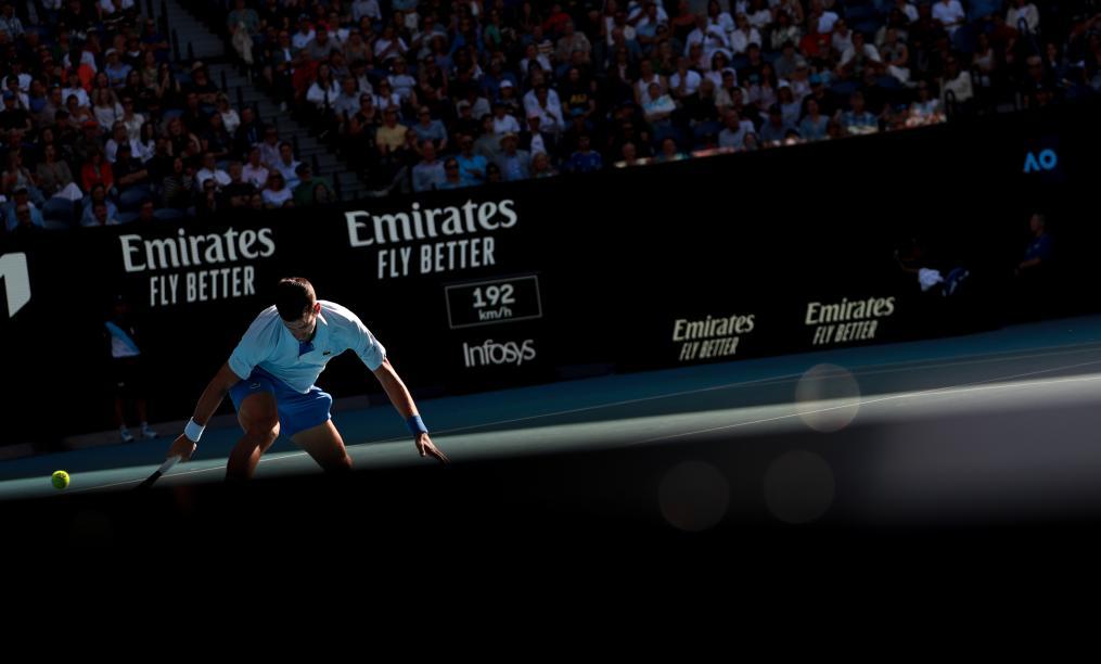 1月26日,焦科维奇在比赛中回球失败。新华社记者 马平 摄