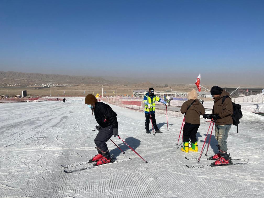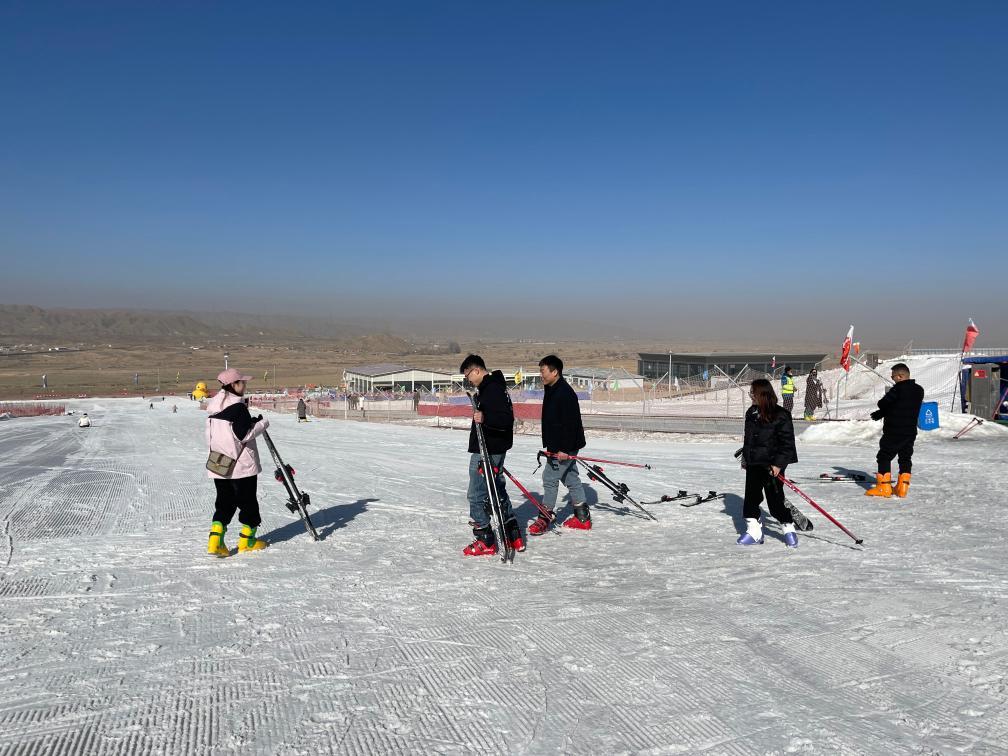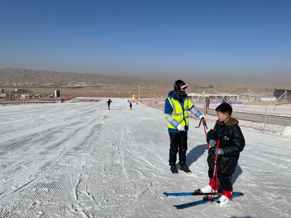赵美淇和小伙伴们滑雪的地方,在白银市景泰县的甘肃白银国家雪上项目训练基地华达滑雪场。基地负责人何晓兵介绍,该滑雪场占地超11万平方米,包括戏雪区、游客接待大厅、餐厅、两条200米长的初级雪道、两条170米长的中级雪道和一条长度超过100米的高级雪道等基础设施。