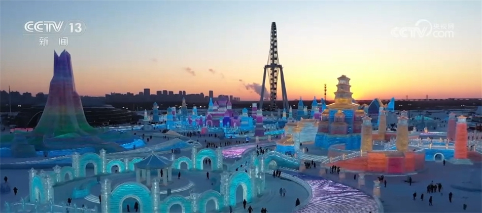 哈尔滨冰雪大世界市场营销部副部长 孙泽旻:冰的单个体积够大,每一个冰垛都在2万立方米左右,只有这种体积够大、体量够大的冰垛,才能保证我们这个冰能度过今年整个一个漫长的夏天。
