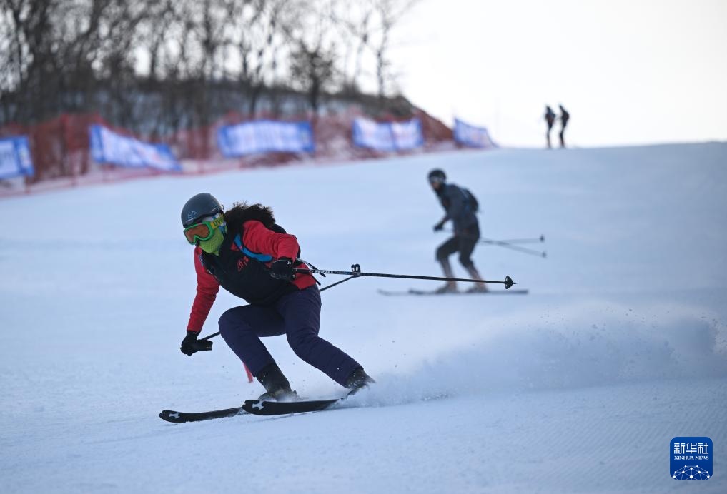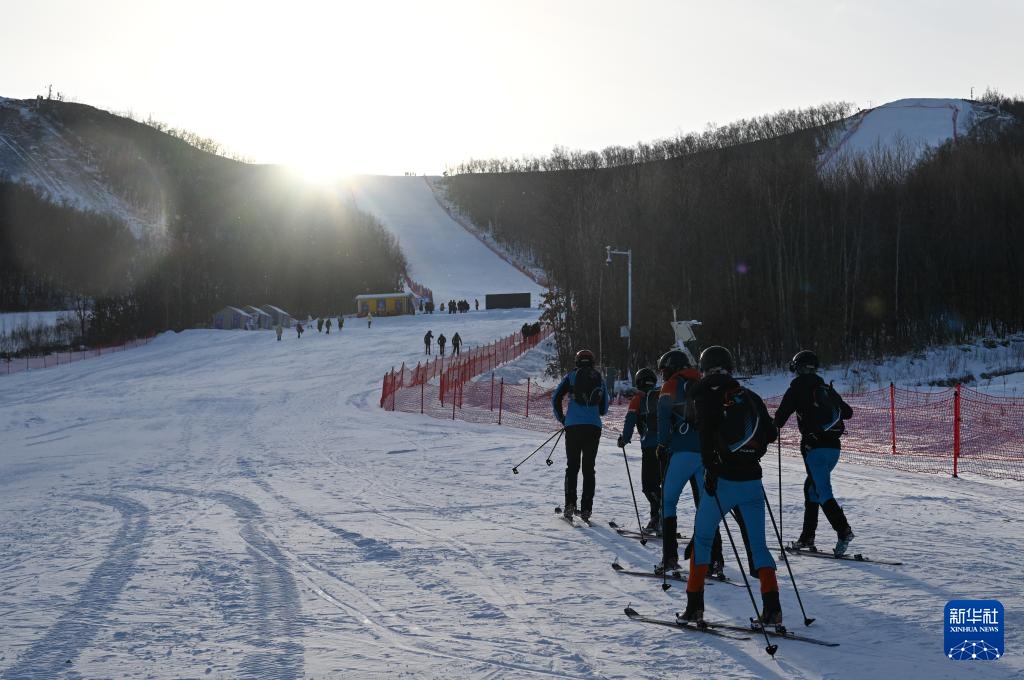1月28日,运动员在内蒙古呼伦贝尔市扎兰屯市金龙山滑雪场训练。新华社记者 贝赫 摄
