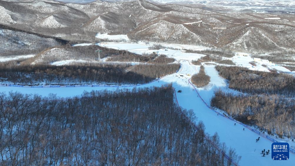 这是1月28日在内蒙古呼伦贝尔市扎兰屯市金龙山滑雪场拍摄的滑雪登山比赛场地(无人机照片)。新华社记者 贝赫 摄