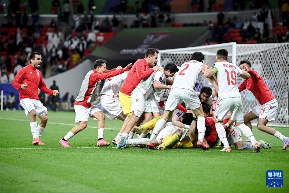当日,在卡塔尔艾哈迈德·本·阿里体育场举行的男足亚洲杯八分之一决赛中,塔吉克斯坦队与阿联酋队在常规时间与加时赛中战成1比1平。通过点球大战,塔吉克斯坦队最终以6比4的总比分战胜阿联酋队,晋级八强。