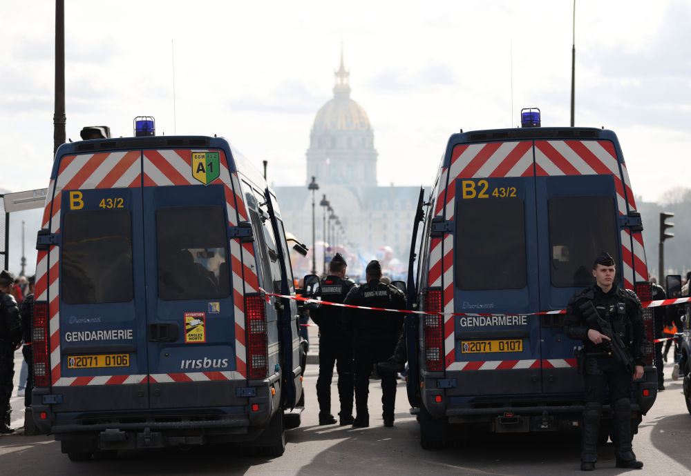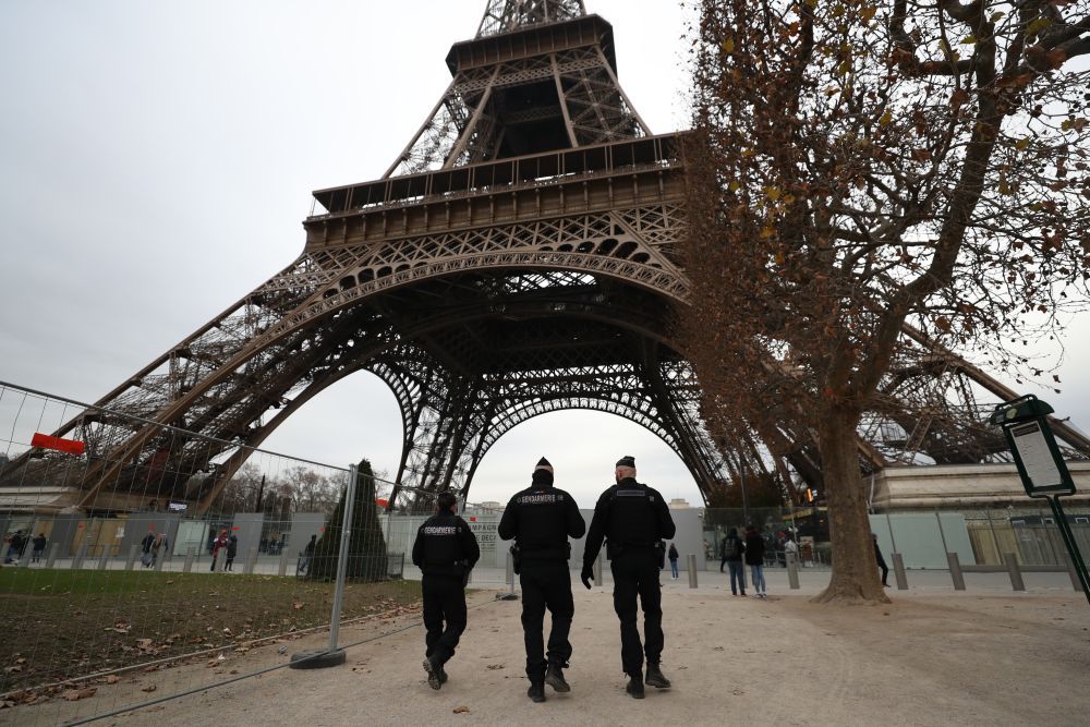 ↑2023年12月3日,宪兵在法国巴黎埃菲尔铁塔附近巡逻。法国内政部长达尔马宁2日在社交媒体上宣布,巴黎当晚发生持刀袭击事件,造成1人死亡、2人受伤,袭击者已被逮捕。
