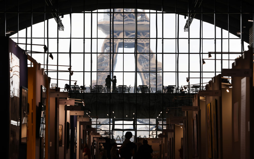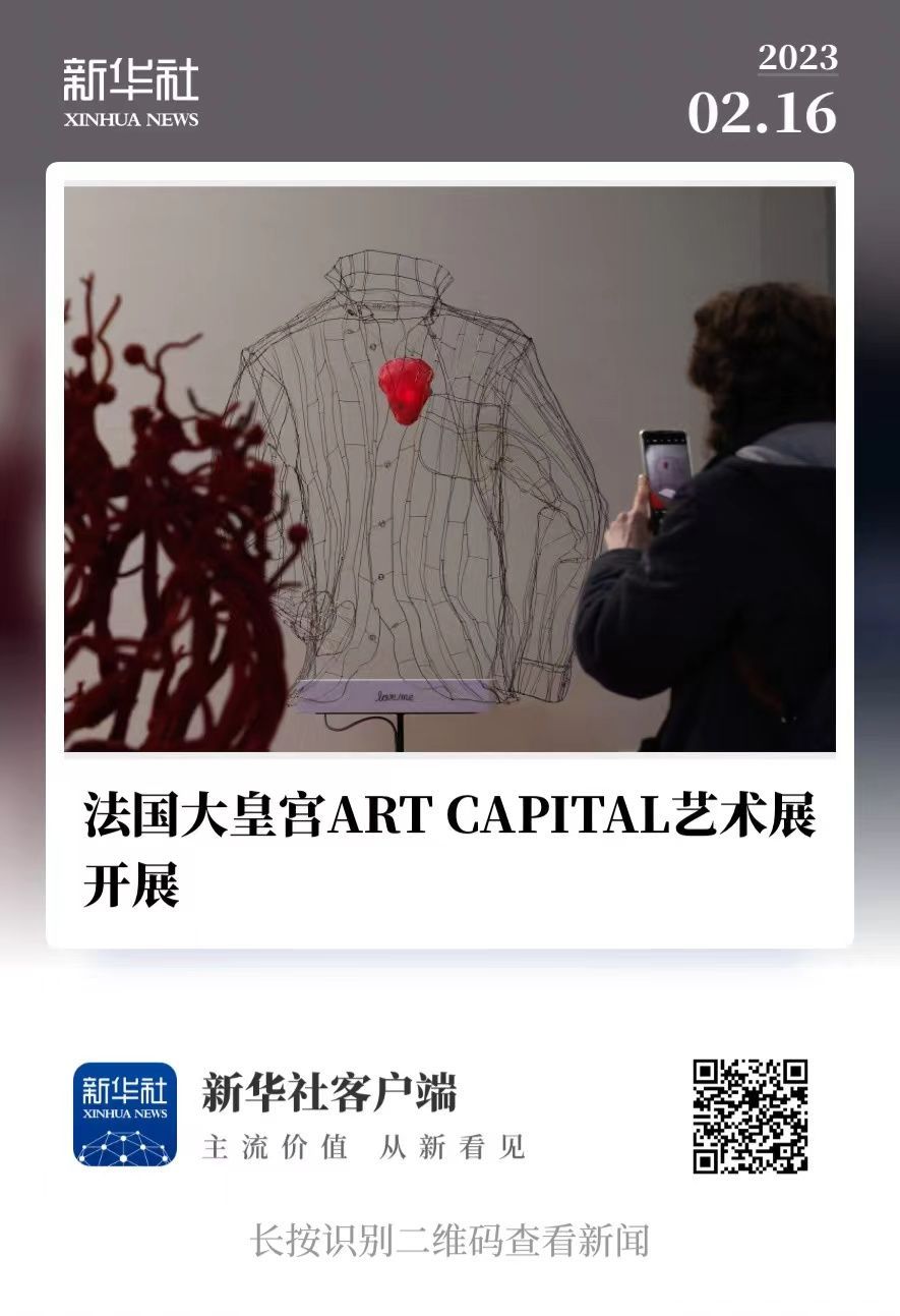 ↑2023年2月16日,在位于法国巴黎埃菲尔铁塔附近的临时大皇宫,人们在ART CAPITAL艺术展上参观。