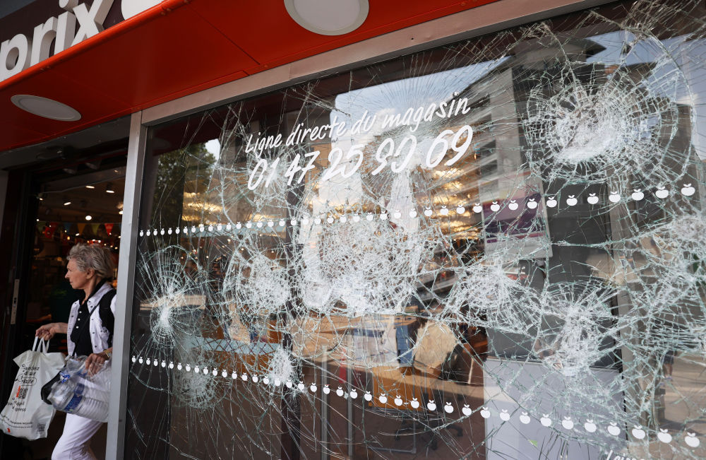 ↑这是2023年6月30日在法国上塞纳省楠泰尔市拍摄的骚乱过后的场景。