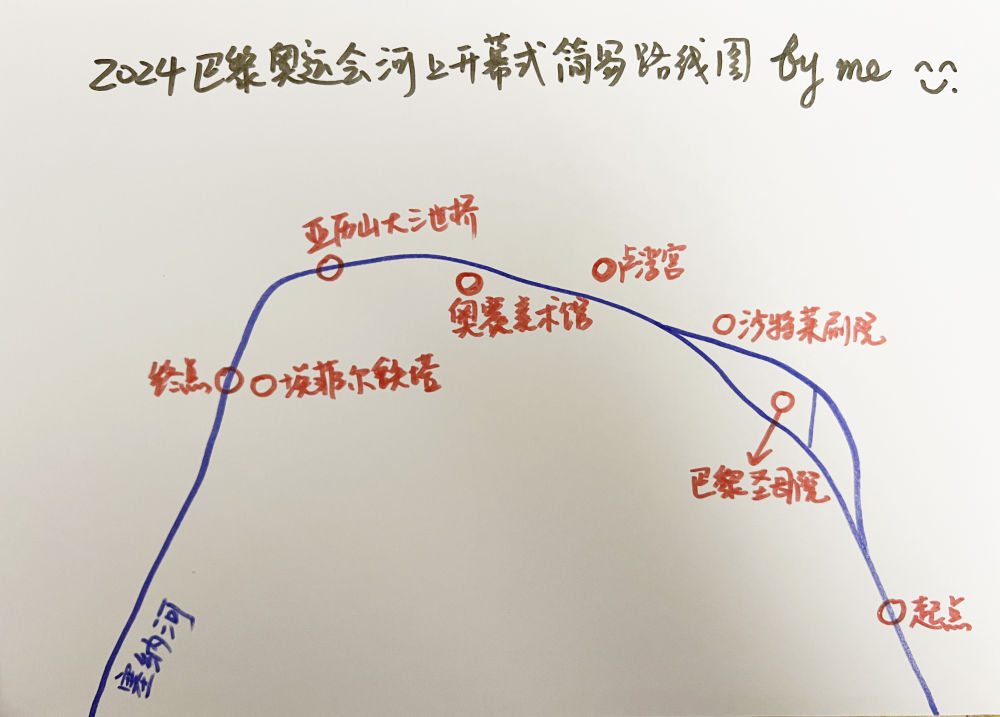 ↑高静手绘的巴黎奥运会开幕式简易路线图
