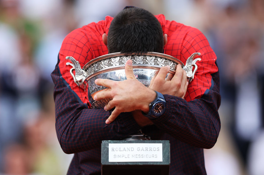 ↑2023年6月11日,焦科维奇在颁奖仪式上。当日,在2023年法国网球公开赛男单决赛中,塞尔维亚选手焦科维奇以3比0击败挪威选手鲁德,拿下个人职业生涯第23个大满贯单打冠军头衔,成为获得大满贯单打冠军次数最多的男子选手。