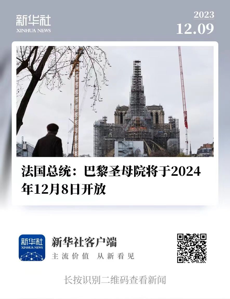↑这是2023年12月8日在法国巴黎拍摄的修复中的巴黎圣母院。