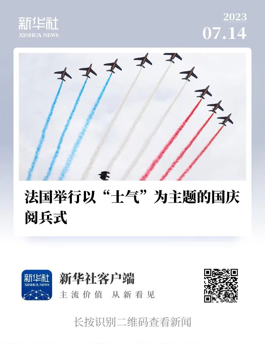 ↑2023年7月14日,“法兰西巡逻兵飞行表演队”参加在法国巴黎举行的国庆阅兵式。