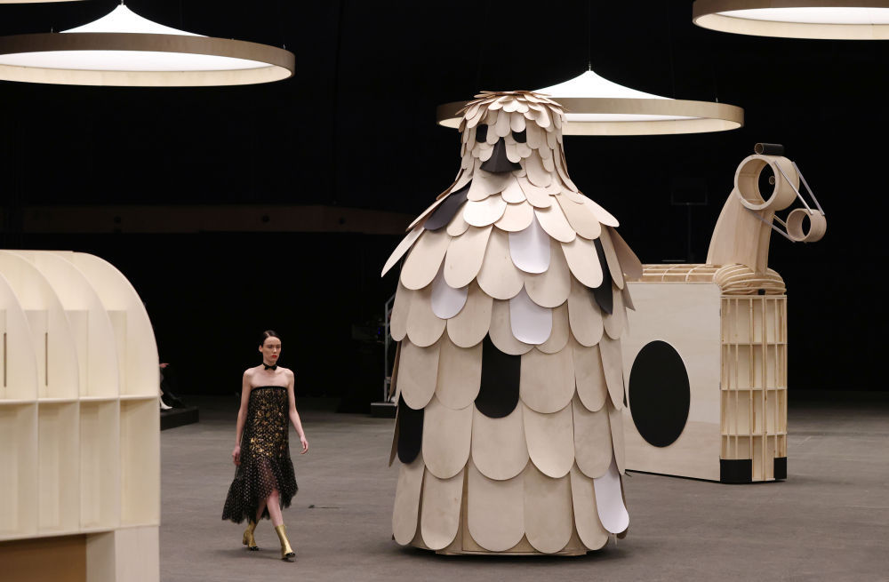 ↑2023年1月24日,模特在法国巴黎高级定制周上展示法国品牌香奈儿2023-2024春夏新品。