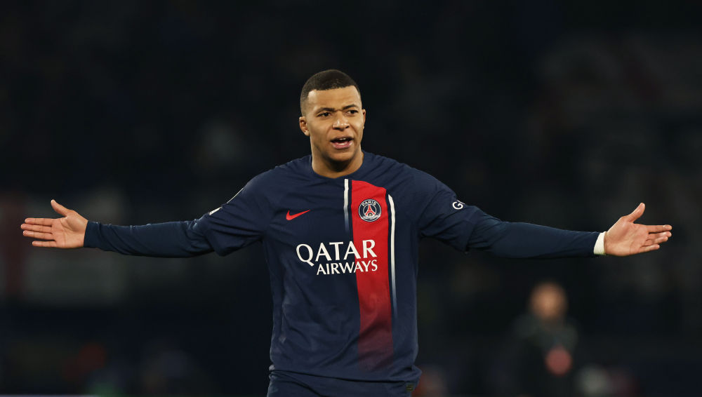 ↑2023年11月28日,巴黎圣日尔曼队球员姆巴佩在比赛中。在当日的欧冠小组赛第5轮比赛中,F组的巴黎圣日耳曼队凭借姆巴佩在伤停补时阶段的点射破门主场1:1绝平纽卡斯尔联队,成功守住了小组第二的位置。