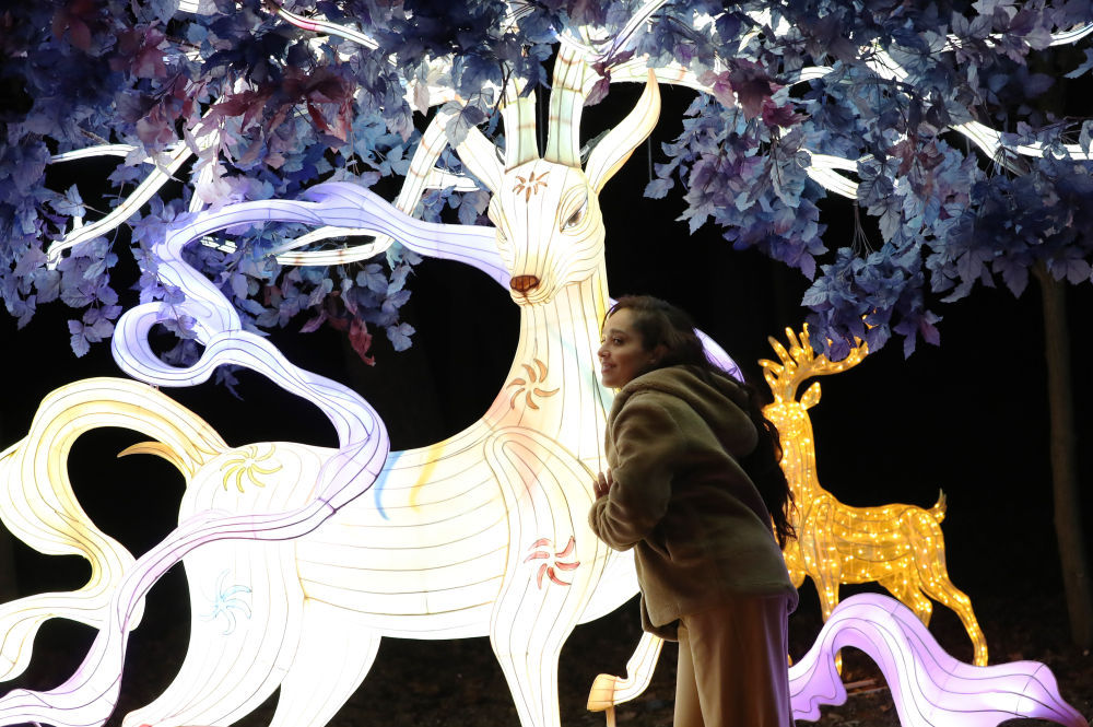 ↑2023年12月14日,人们在法国巴黎举行的“山海有灵”——豫园灯会开幕仪式暨预展上参观。
