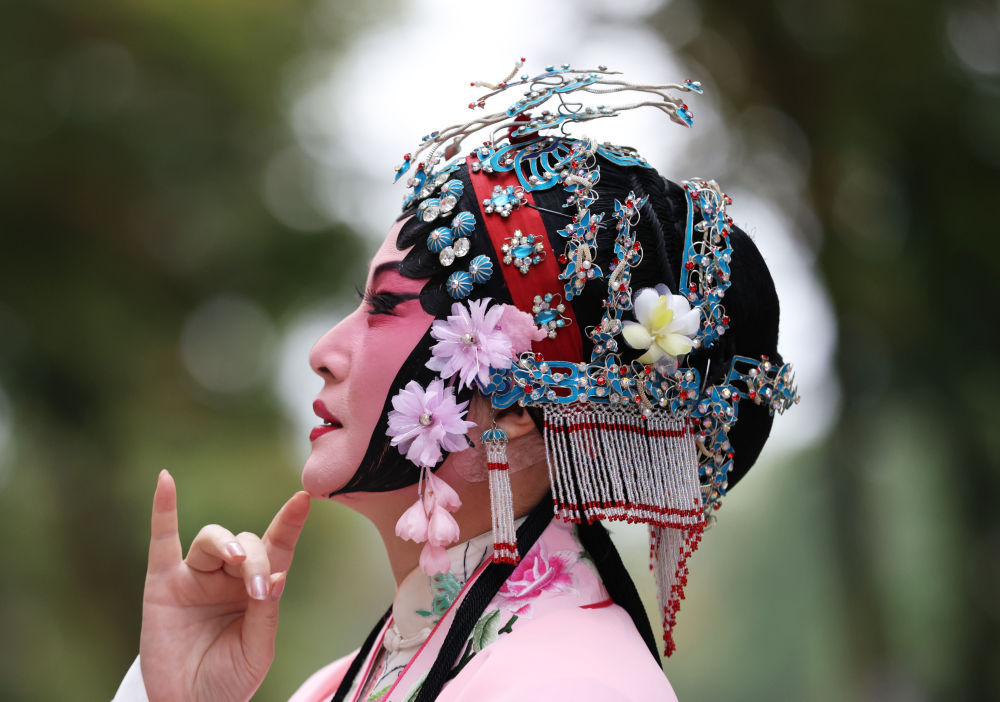 ↑2023年9月13日,江苏省演艺集团昆剧院国家一级演员孔爱萍在法国巴黎街头参加昆曲快闪。