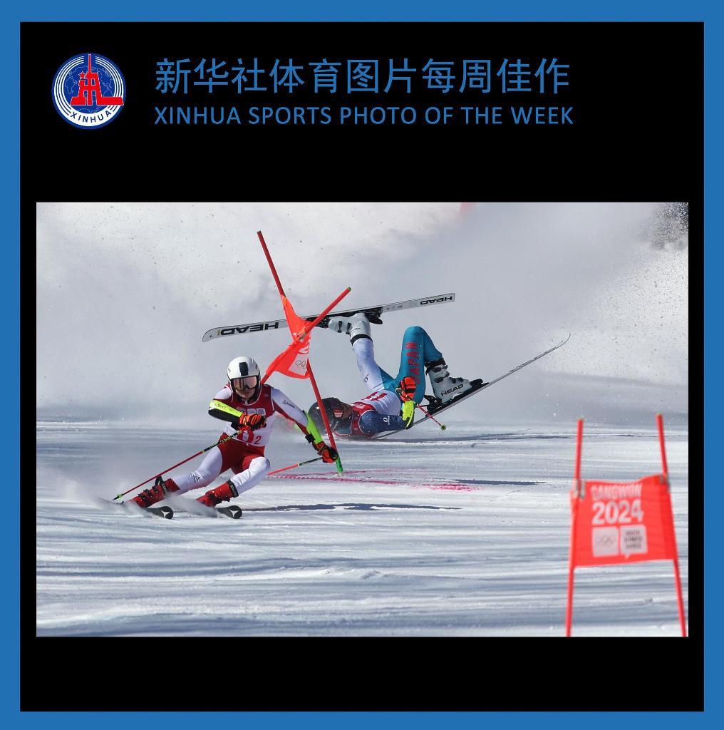 当日,2024年江原道冬青奥会高山滑雪混合平行团体八分之一决赛在韩国旌善举行。