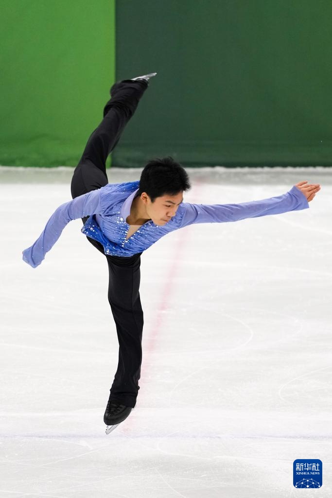 1月29日,中国选手田桐赫在自由滑比赛中。最终,他以179.32分的总成绩获得男子单人滑比赛第八名。新华社记者 张笑宇 摄