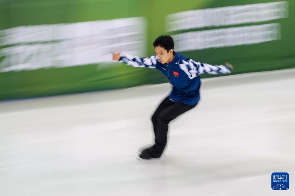 1月29日,中国选手田桐赫在自由滑比赛前热身。最终,他以179.32分的总成绩获得男子单人滑比赛第八名。新华社记者 张笑宇 摄