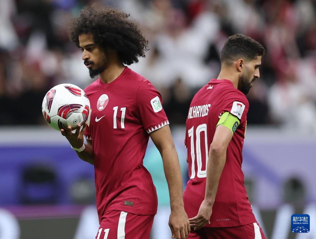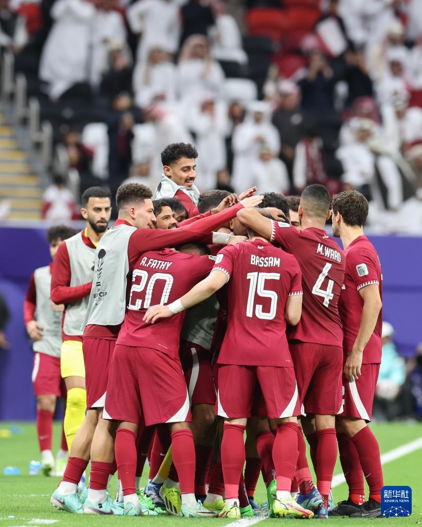 当日,在卡塔尔海湾球场举行的男足亚洲杯八分之一决赛中,卡塔尔队2比1战胜巴勒斯坦队,晋级八强。