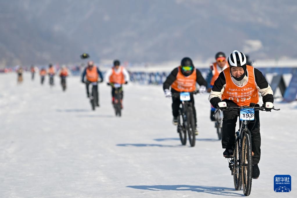 1月30日,参赛者在雪地自行车马拉松挑战赛中。新华社记者 颜麟蕴 摄