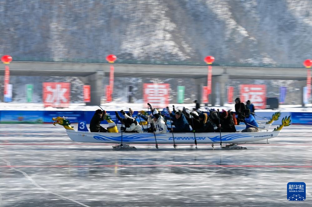 1月30日,参赛者在冰上龙舟超级联赛中。新华社记者 颜麟蕴 摄